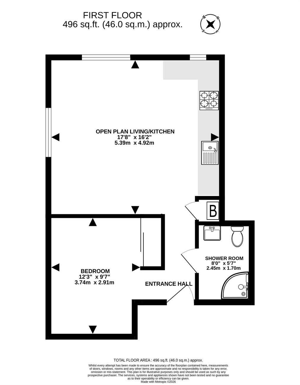 A NEW LETTING FROM HOWLANDS A first floor one bedroom flat located in the centre of Bagshot village, open plan living room/kitchen, well equipped kitchen with appliances, double bedroom with wardrobe, quality bathroom, one parking space, unfurnished, available now.