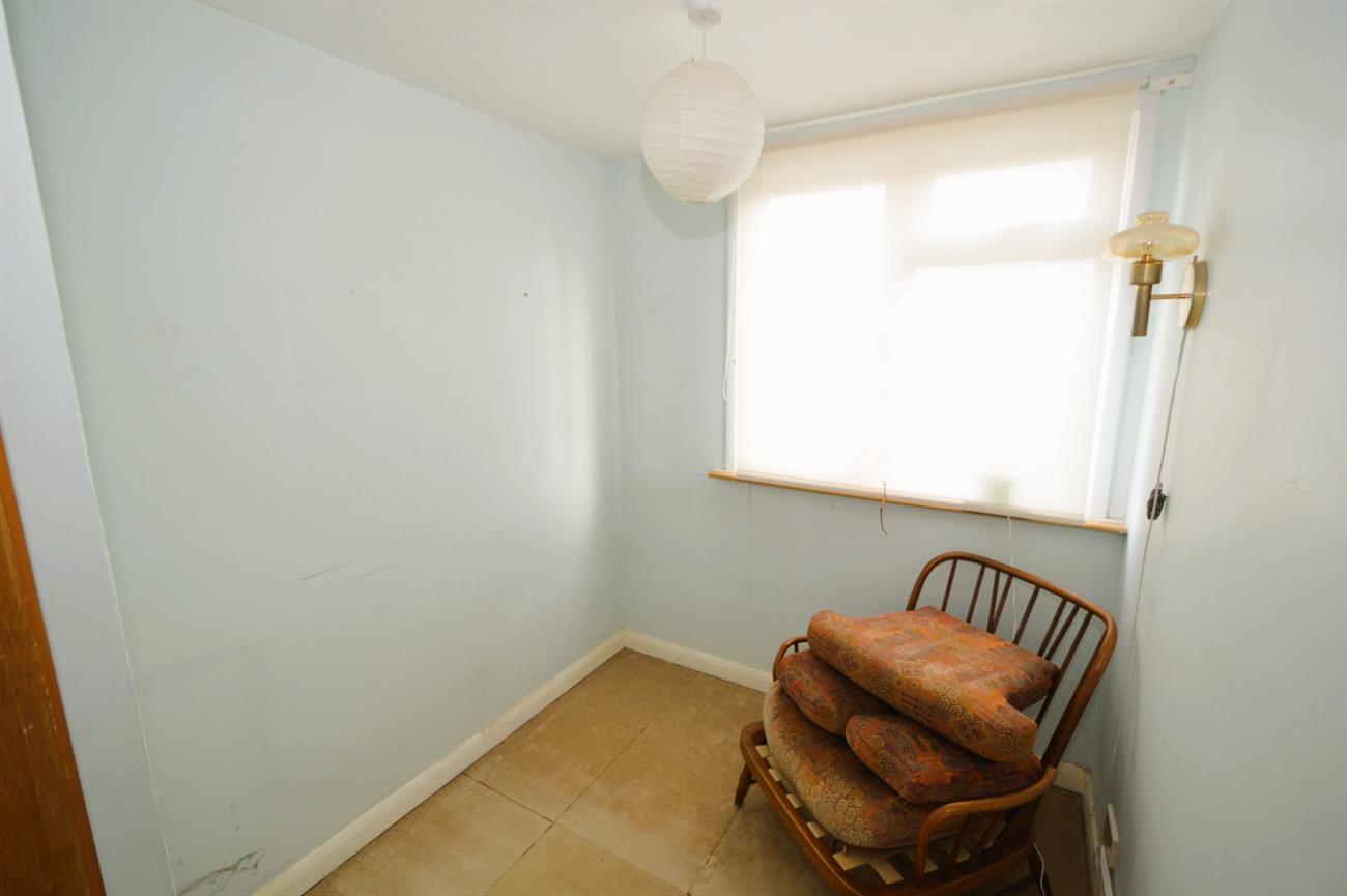 BEDROOM THREE: 9’5 x 6’5 (2.87m x 1.97m). Double glazed window, electric heater, over the stairs storage cupboard.