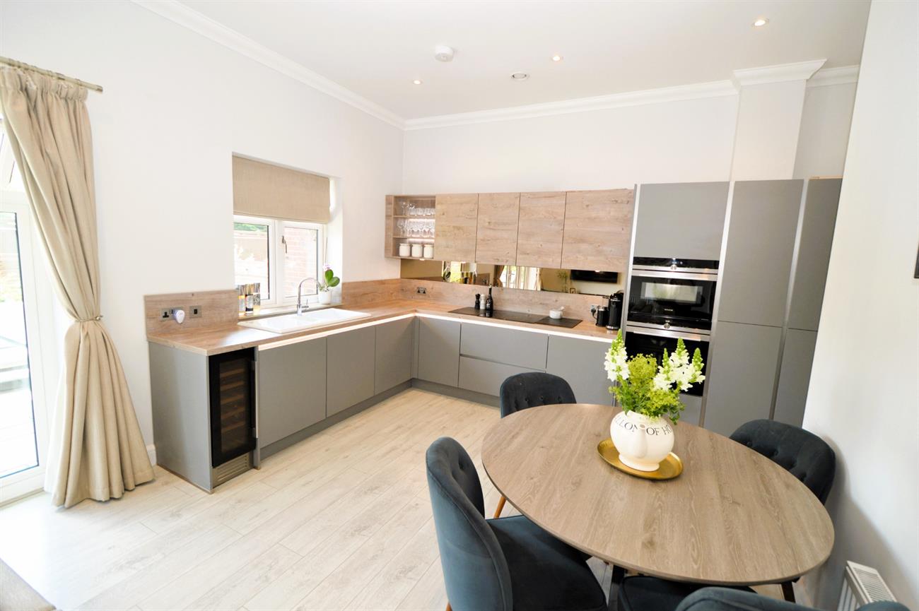 Kitchen area: Modern range of base and wall cupboards, worktops with splash backs, cabinet under lighting, built-in wine fridge, Seimens double oven, integrated fridge and freezer, pull out bin storage ,built-in Zanussi dishwasher, Siemens four ring induction hob with cooker hood above.