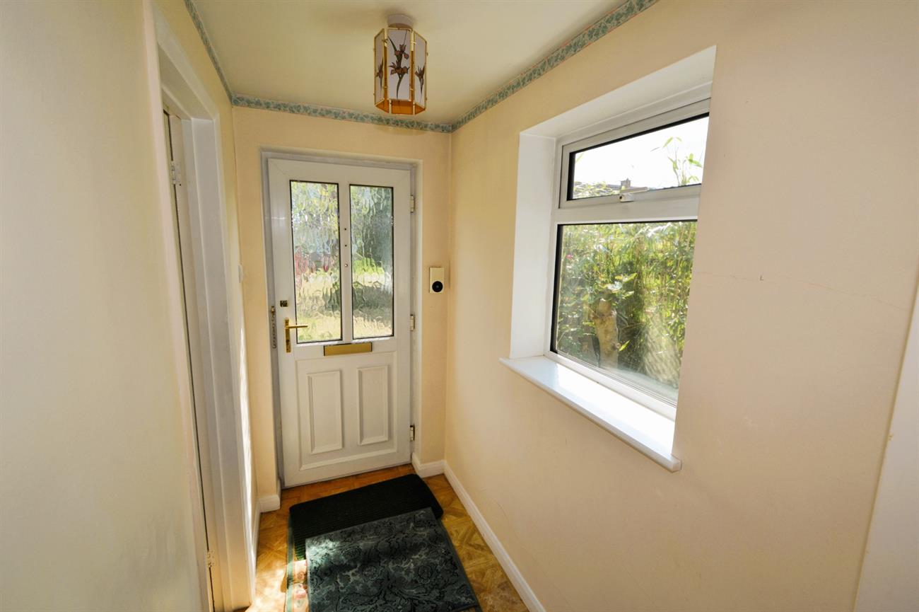 A walkway pathway leads to the front porch extension with double glazed front door to the: