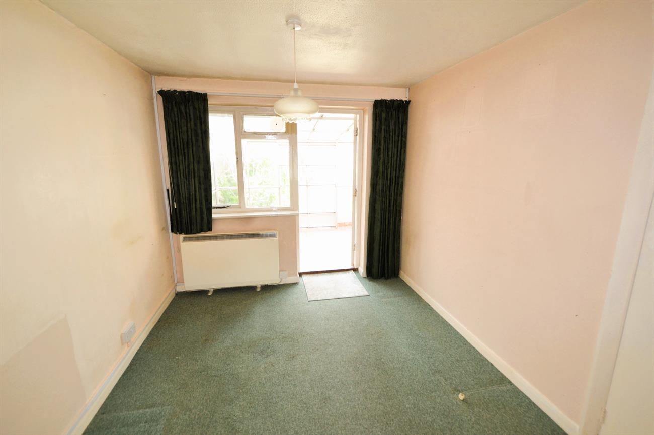 DINING ROOM: 10’10 x 8’10 (3.29m x 2.70m). Electric storage heater, single glazed window and door.