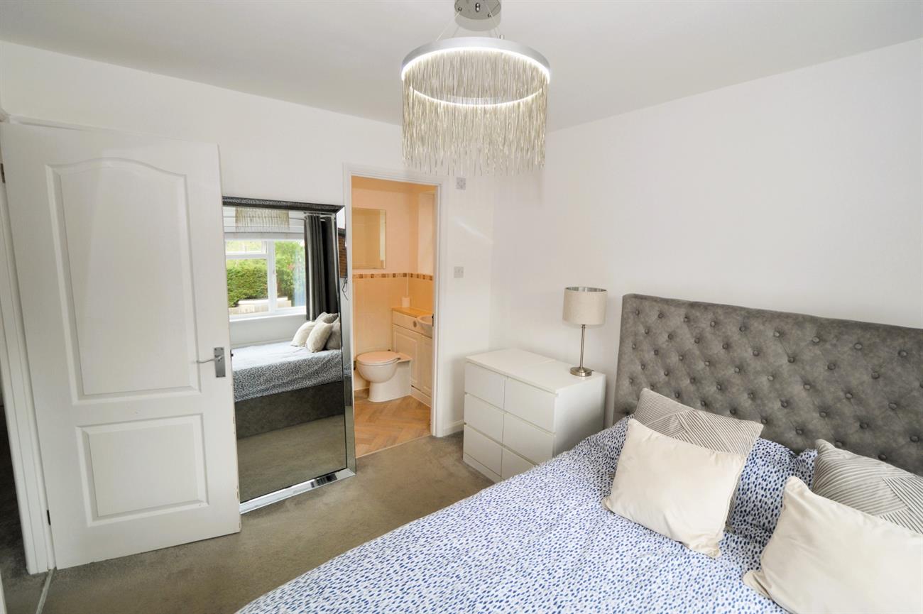 BEDROOM ONE: 10’2 x 8’10 (3.09m x 2.69m). Front aspect double glazed window, radiator, storage cupboard, TV point, door to ENSUITE SHOWER ROOM: Shower cubicle with sliding door, wall mounted shower unit on a riser bar, down lights, low level WC, wash basin, double glazed window, towel radiator, vinyl flooring.