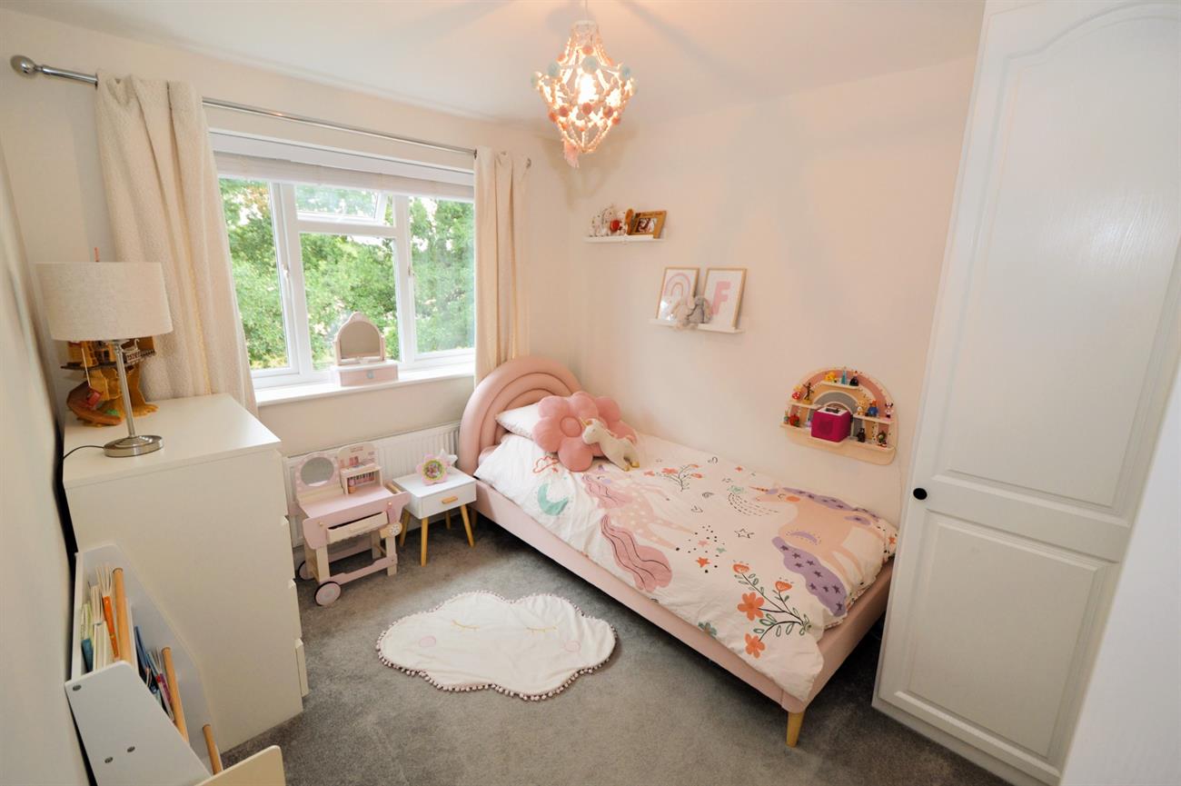 BEDROOM THREE: 8’7 x 6’10 (2.62m x 2.09m). Double glazed window overlooking rear garden, radiator, built-in wardrobe.