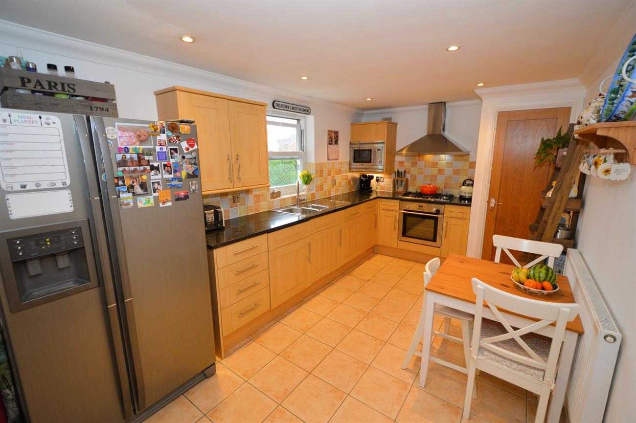 KITCHEN/BREAKFAST ROOM: 14’9 x 8’11 (4.49m x 2.72m). A well equipped kitchen with space for a large fridge/freezer, range of base and wall cupboard with quality granite worktops, space for a breakfast table and chairs, radiator, one and a half bowl stainless steel sink unit, double glazed window, down lighting, integrated Hoover washing machine and a full size dishwasher, stainless steel cooker hood, five ring gas hob, electric Diplomat oven, cabinet under lighting, cupboard with wall mounted Ideal combination boiler for heating and the hot water.