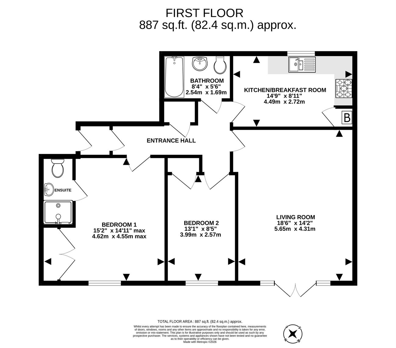 BATHROOM: 8’4 x 5’6 (2.54m x 1.69m). A luxury bathroom with a white Roca suite, panel enclosed bath with hand shower, wall mounted basin with mixer tap, low level WC, fully tiled to the bath area, towel radiator, extractor fan, down lights.