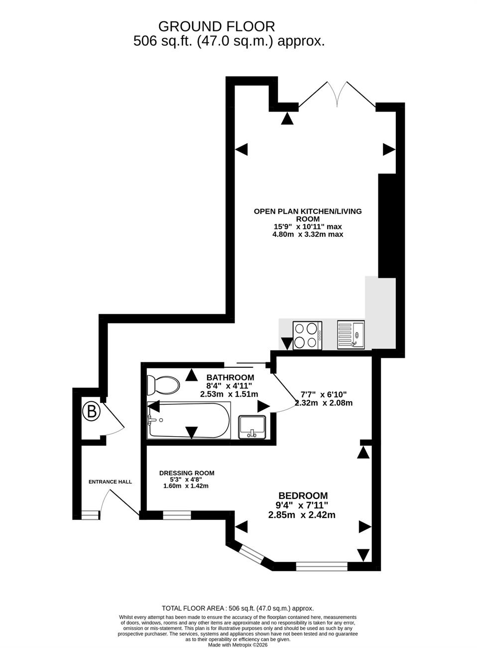 DRESSING ROOM/STUDY: 5’3 x 4’8 (1.60m x 1.42m) With a double glazed window and extractor fan, ideal for as a dressing room or as a study/office.