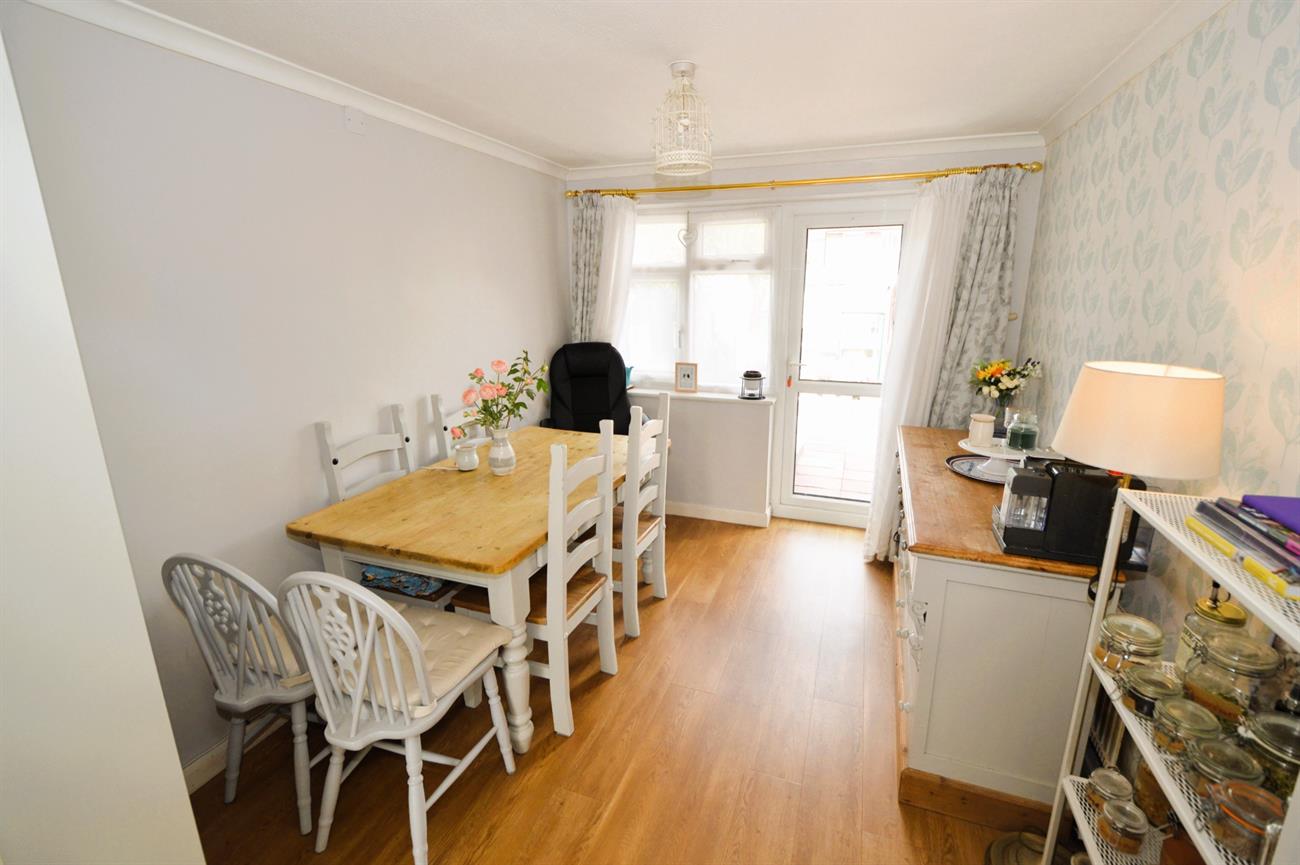 DINING ROOM: 10’10 x 8’10 (3.29m x 2.69m). Radiator, continuation of the wood laminate flooring, double glazed window and door to garden.